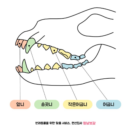 앞니를 시작으로 송곳니, 어금니 순서로