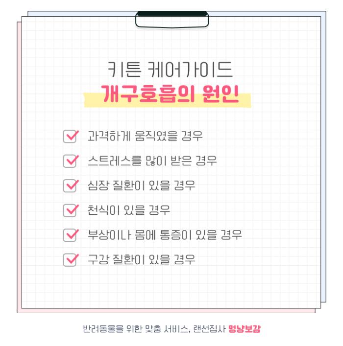 고양이는 코로 숨을 쉬는 것이 정상입니다.